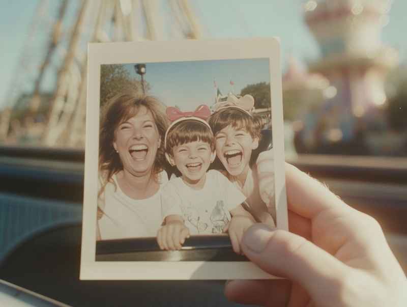 Those Tokyo Disneyland studio portraits she insisted on for her annual birthday celebration Disney trips when she let us skip school. The cheesy ride photos she bought even when we looked terrible.